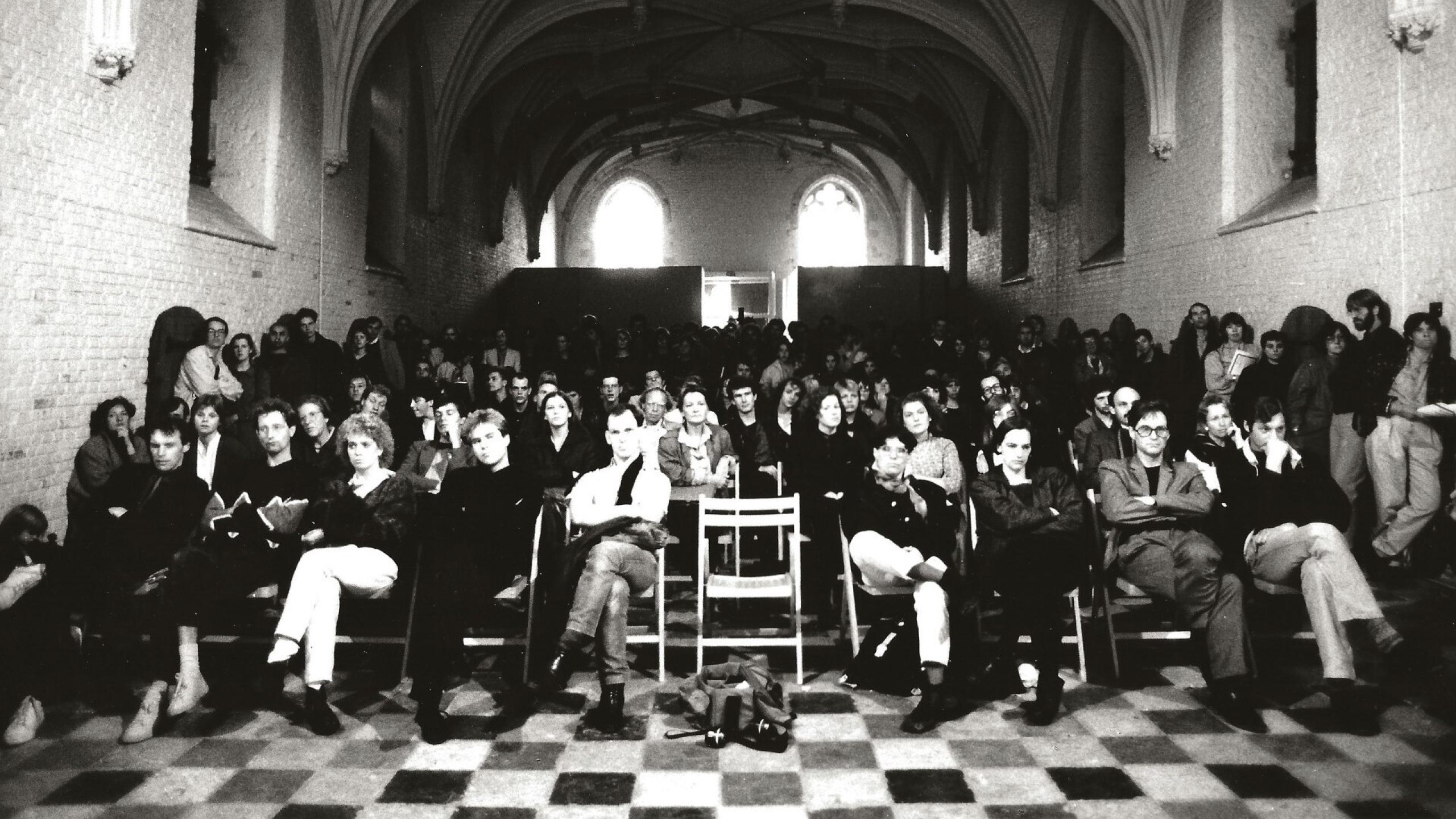 Curator and Forum archivist Eva Langerak will be in conversation on Saturday afternoon 14 March with former Forum participants, artist and architect Luc Deleu, artist Irene Fortuyn (t.b.c.) and artist Berend Strik. This influential festival was organised between 1977 and 1987 by conceptual artist Marinus Boezem and Maria-Rosa Boezem. Forum was not a traditional festival, but an experimental platform where, through workshops, new site-specific work and lectures, the borderland between visual art and disciplines such as architecture, design, film and theatre was explored.