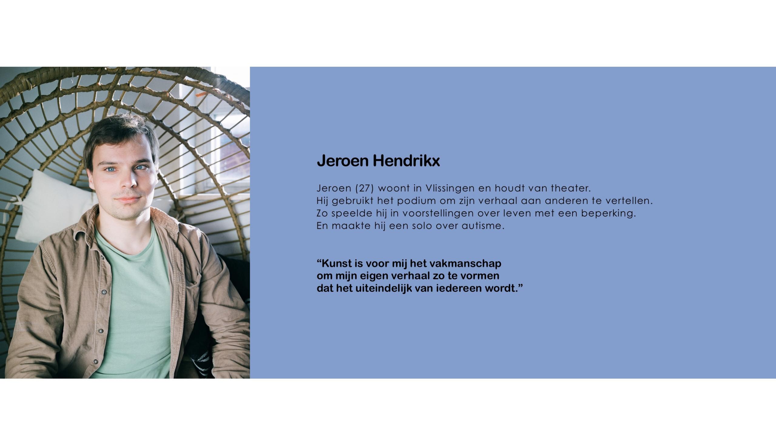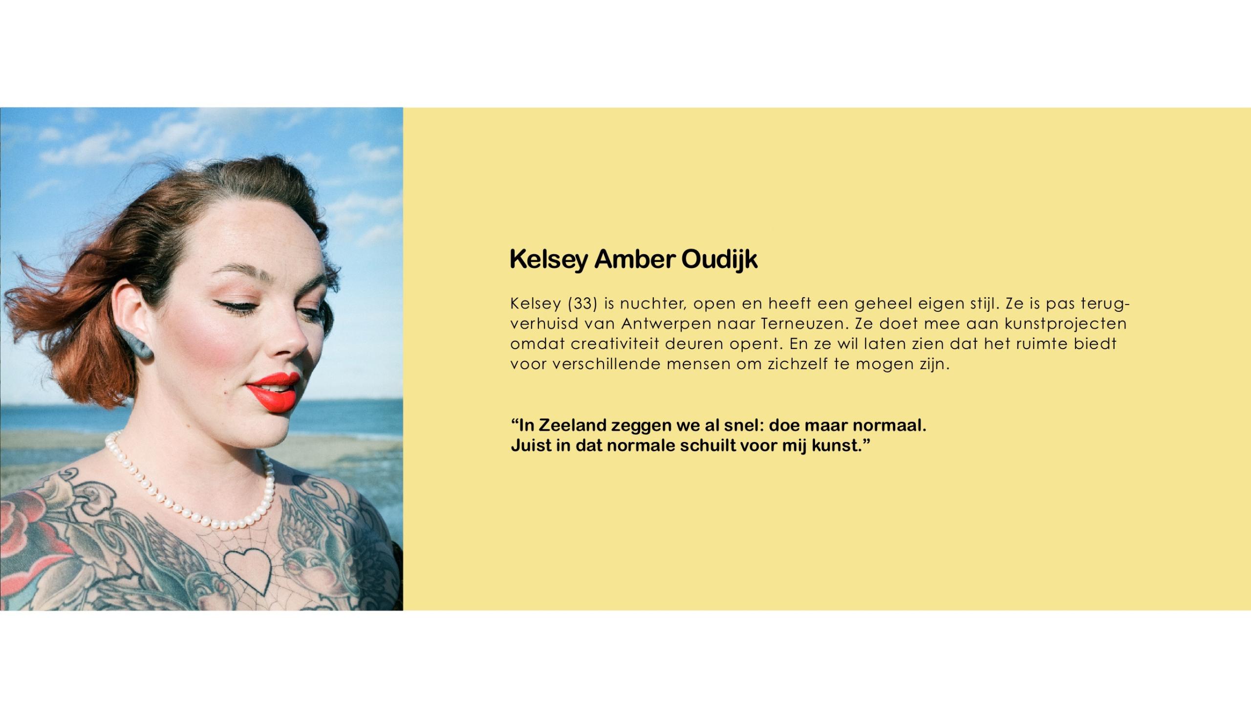 Kunst heeft een positieve impact op iedereen die daarvoor openstaat. Dit is een campagne met portretten van Zeeuwen die hun persoonlijke verhaal met toeschouwers delen. Deze campagne is in 2026 digitaal en analoog op verschillende plekken in Zeeland te zien.